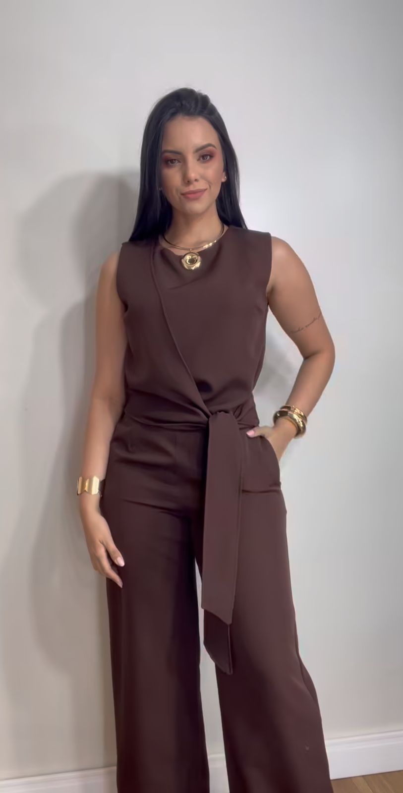 O Conjunto Pietra combina sofisticação e modernidade em um design atemporal. Confeccionado em tecido de caimento impecável, apresenta detalhe lateral com amarração que valoriza a silhueta e traz elegância ao visual.
