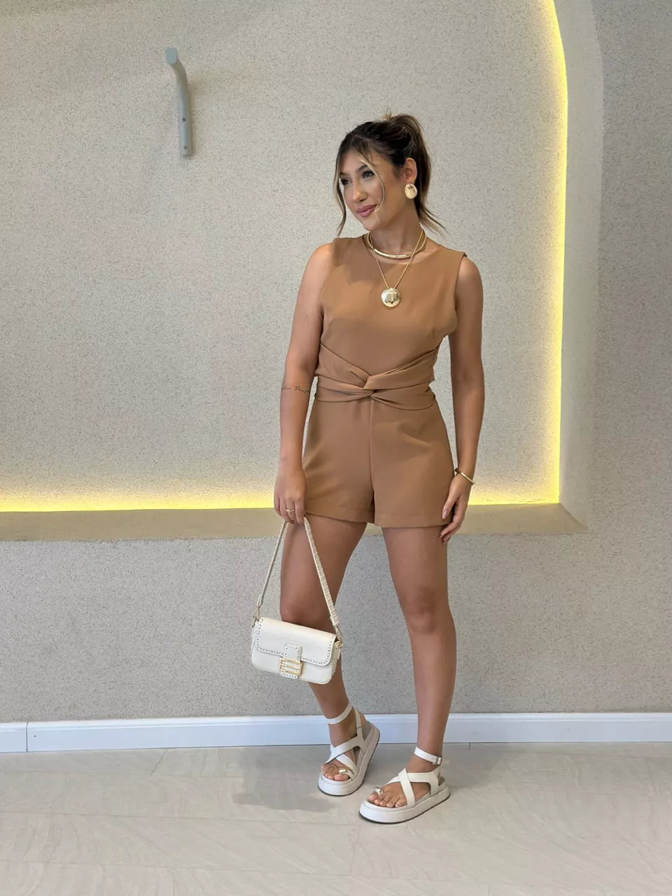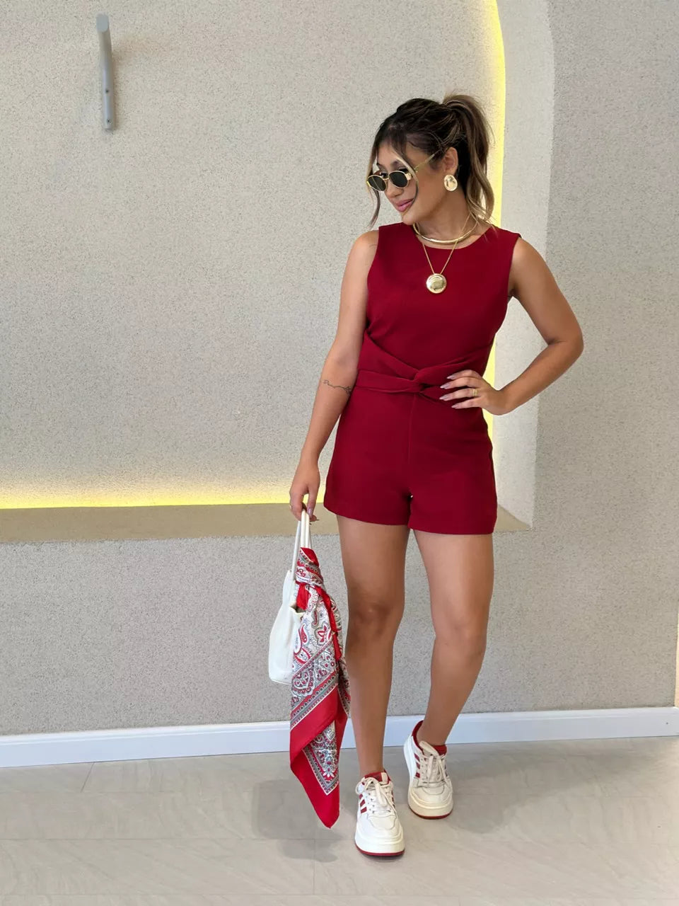 O Macaquinho Eloisa Amarração é uma combinação perfeita de moda e conforto. Com modelagem cavada e gola redonda, ele traz um visual moderno e sofisticado, com caimento impecável que valoriza a silhueta. O charme especial da peça está na sobreposição das costas, que se conecta à amarração transpassada na parte da frente – um detalhe que faz toda a diferença.