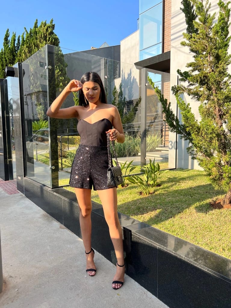 O curto que vai roubar a cena! Com design moderno e acabamento impecável, o Short Vittar é confeccionado em tecido todo em paetê, garantindo brilho e glamour em cada movimento. Conta com aviamento em zíper metalizado, que adiciona um toque fashion e ousado à peça. Ideal para compor looks poderosos em festas, baladas ou festivais.